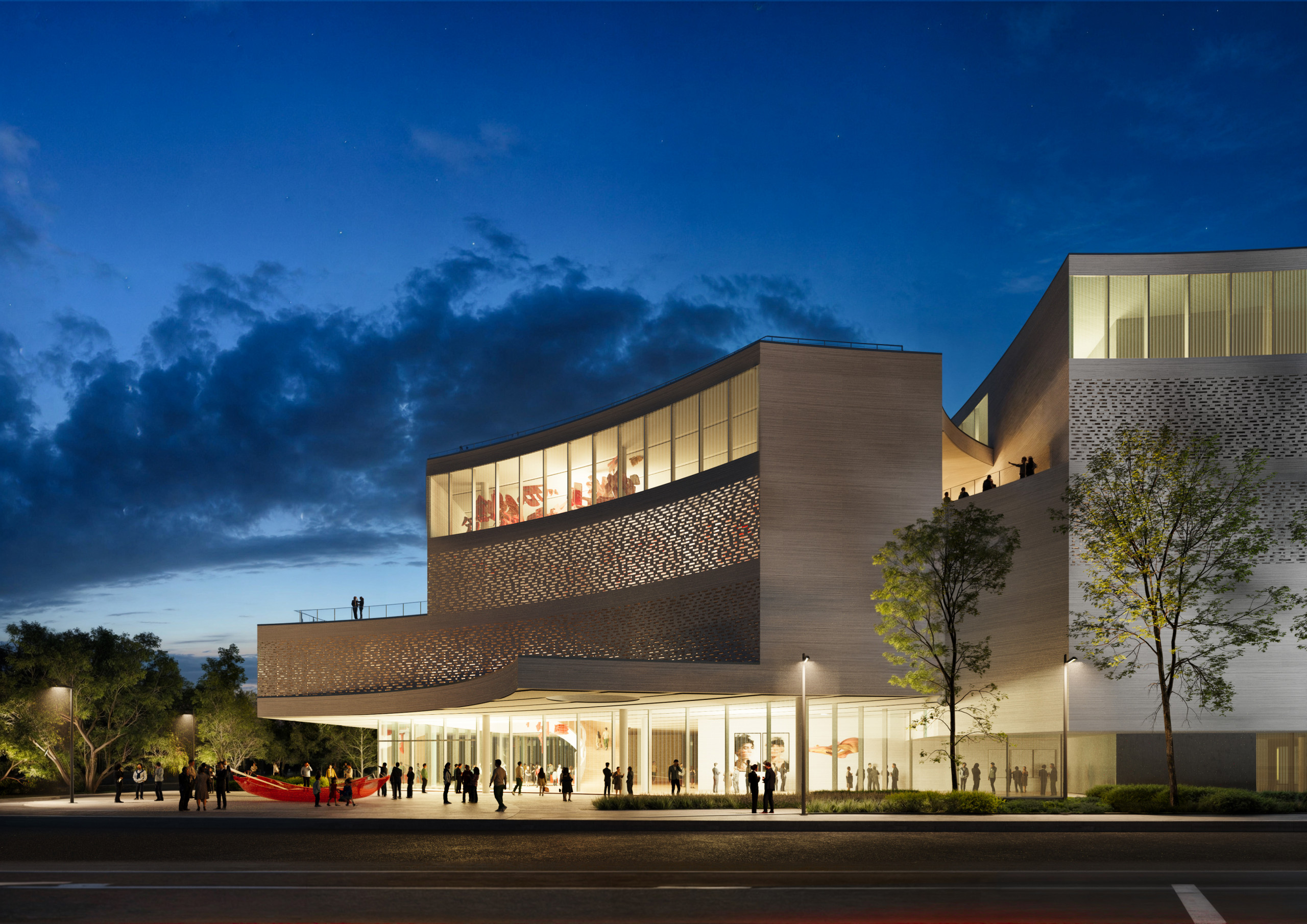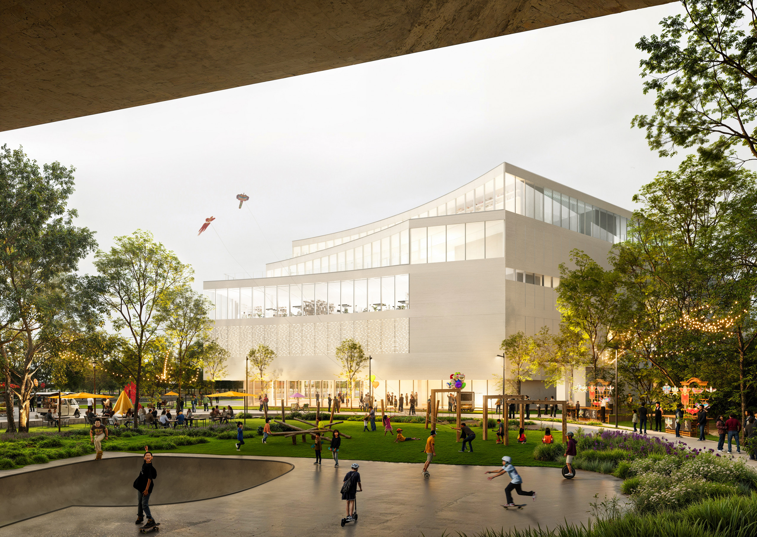 在该项目中,设计团队坚持以人的角度思考,以人的尺度设计,用人的视高审视。设计团队精心规划了多个互动节点和共享空间,以促进剧场与社区活动中心的紧密联动。例如,中庭、户外广场和连廊等区域不仅是连接各功能区的重要枢纽,更是居民日常交流、互动与休闲的理想场所。这些空间的有机结合,使得社区活动与文化演艺活动在此相互交融,进一步增强了居民之间的联系与互动。